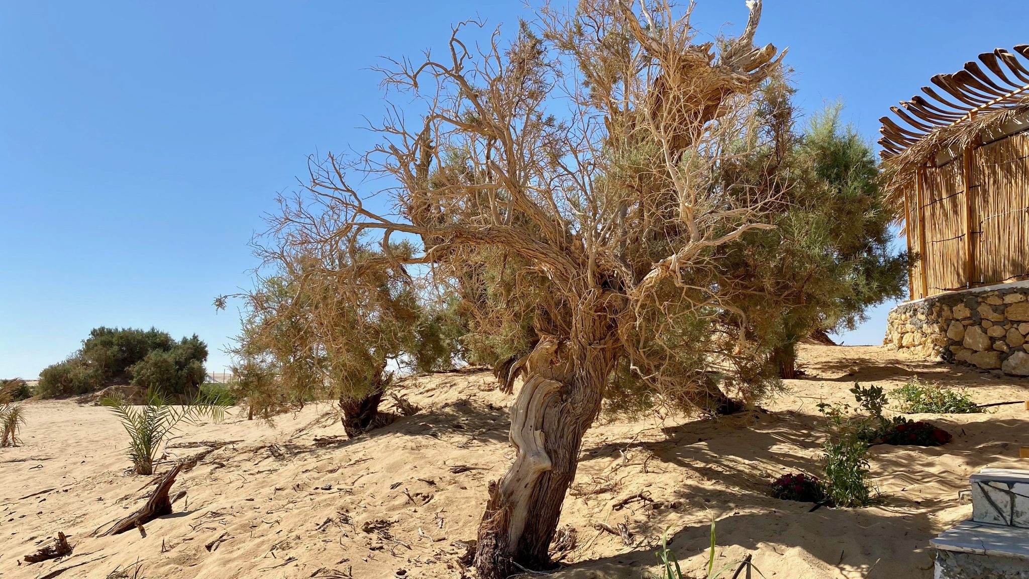 The Tamarix Trees in Egypt are uniquely adapted to the generally hot and dry climate. While some Tamarix trees grow near the Nile Valley, others have developed unique strategies for growing inland and conserving water. As such, some plants have a more waxy coating on their leaves whilst others have long roots that reach the water in the ground.